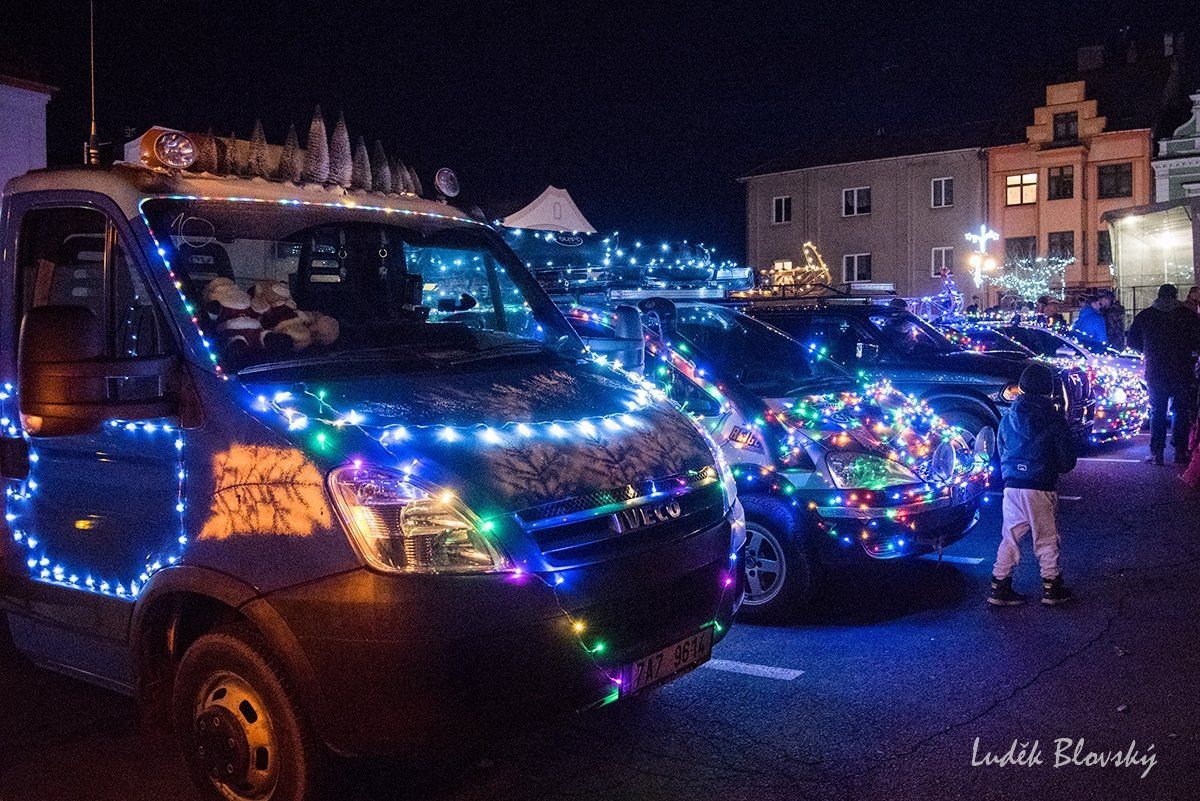 Blovice na jihu Plzeňska v úterý 23. prosince 2025 zaplnila svítící auta. Na Masarykově náměstí se před startem sešlo zhruba padesát vánočně vyzdobených vozidel, mezi nimi i kamion. Kolona pak vyrazila na charitativní trasu po regionu. Výtěžek má pomoci třiatřicetileté Gábině Hájkové, která čelí vážným zdravotním komplikacím.