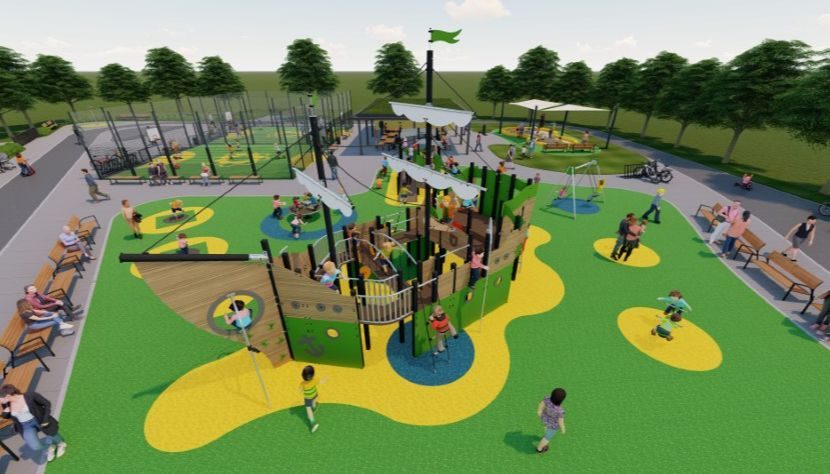 Areál má zabrat přibližně 3 100 metrů čtverečních. Počítá se s velkou herní dominantou v podobě pirátské lodi, prolézačkami, věží se skluzavkami, houpačkami, trampolínami a hřištěm pro míčové hry. Děti budou mít k dispozici také dráhu pro odrážedla a kolečkové brusle. Projekt je určen především dětem od předškolního věku do zhruba 12 let. (zlin.eu)