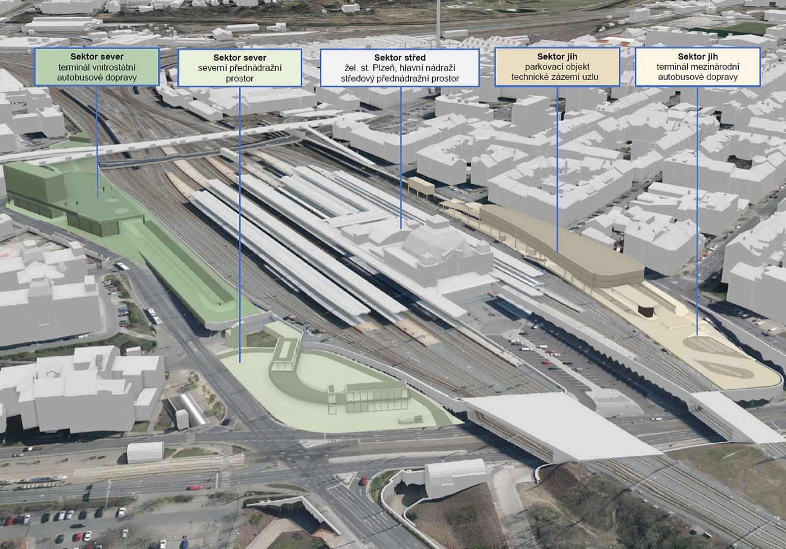 Plzeň se Správou železnic postaví nad hlavním nádražím dvoupodlažní parkovací dům s autobusovým terminálem pro dálkové linky. Město koupilo poštu za 26 mil., kapacita ~150 míst, financování přes SFDI, cíl realizace kolem roku 2030.