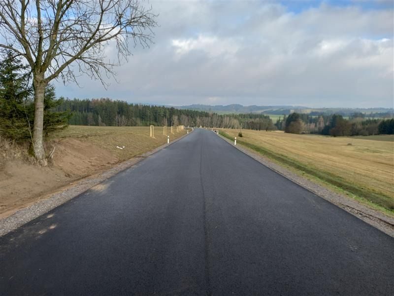 Opravený úsek měří 2,1 kilometru. Nešlo jen o pokládku nového povrchu — stavba zahrnovala i přeložku části trasy a opravu mostu. Podle kraje po nové silnici od poloviny prosince jezdí i autobusové spoje, které se řídí novým jízdním řádem.