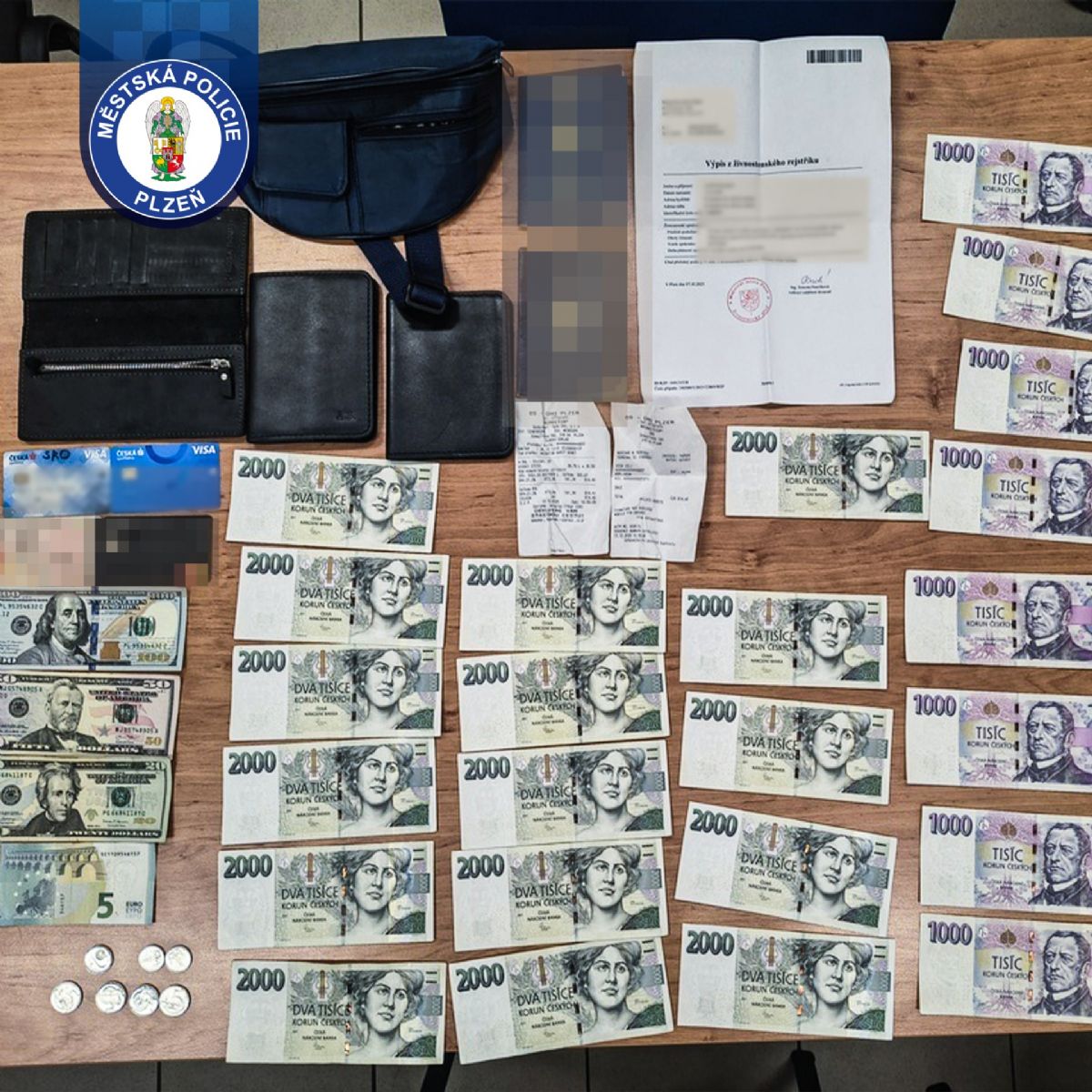 V Plzni poctivá nálezkyně odevzdala strážníkům modrou ledvinku s doklady, platebními kartami a téměř 44 000 Kč; majitel ji po ověření identity vyzvedl následující den. Město eviduje nálezy online a uchovává je tři roky.