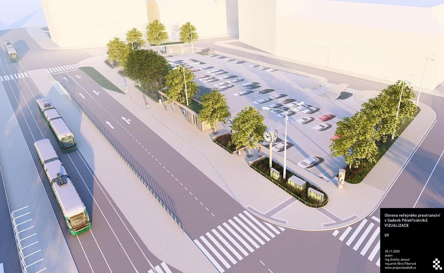 Sady Pětatřicátníků v centru Plzně projdou proměnou: více zeleně vč. 10 nových stromů, nové kiosky se zelenou střechou, sjednocené kryty sítí, méně billboardů a zapuštěný památník 35. pěšího pluku; práce mají začít na jaře.