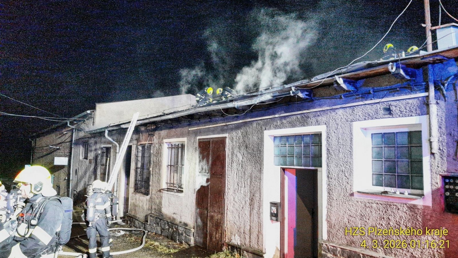 V noci z 3. na 4. března hořel v Jateční ulici v Plzni přízemní dům, kde bydleli čtyři občané Ukrajiny. Hasiči nasadili tři proudy, rozebrali část střechy, předběžná škoda cca 500 tis. Kč. Příčina se vyšetřuje, čtyři lidé ošetřeni.
